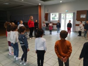 Chaque séance commence par un échauffement de la voix et du corps à travers différents petits exercices qui nous plaisent beaucoup.