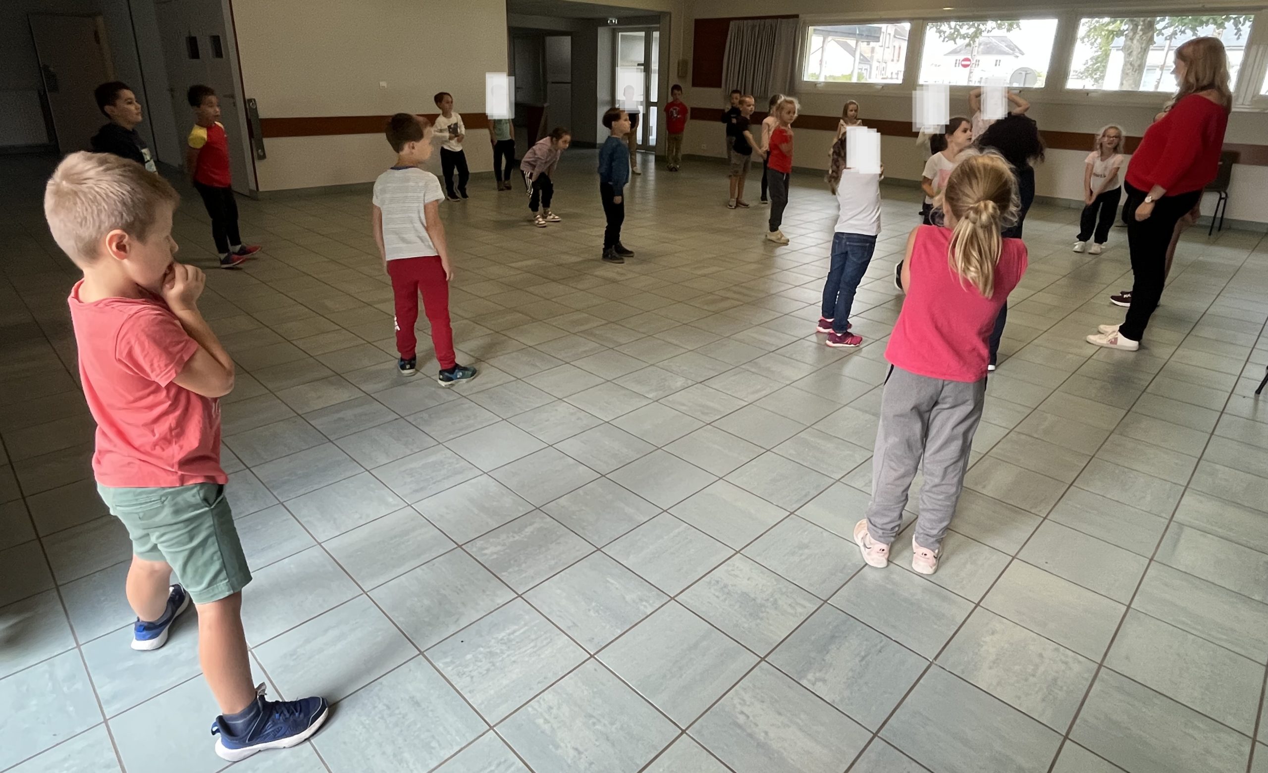 Dans un premier temps, les enfants échauffent la voix et le corps :
