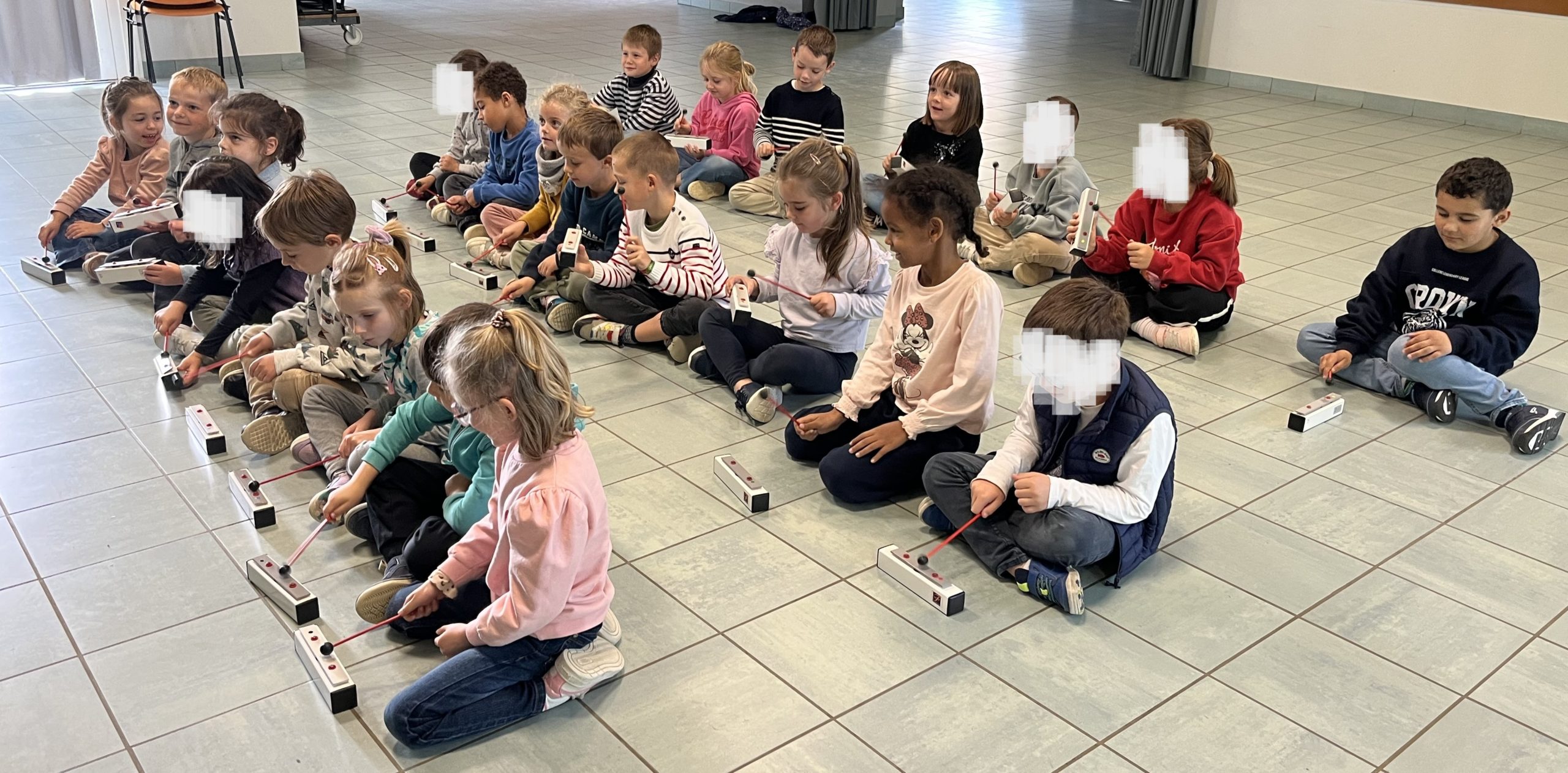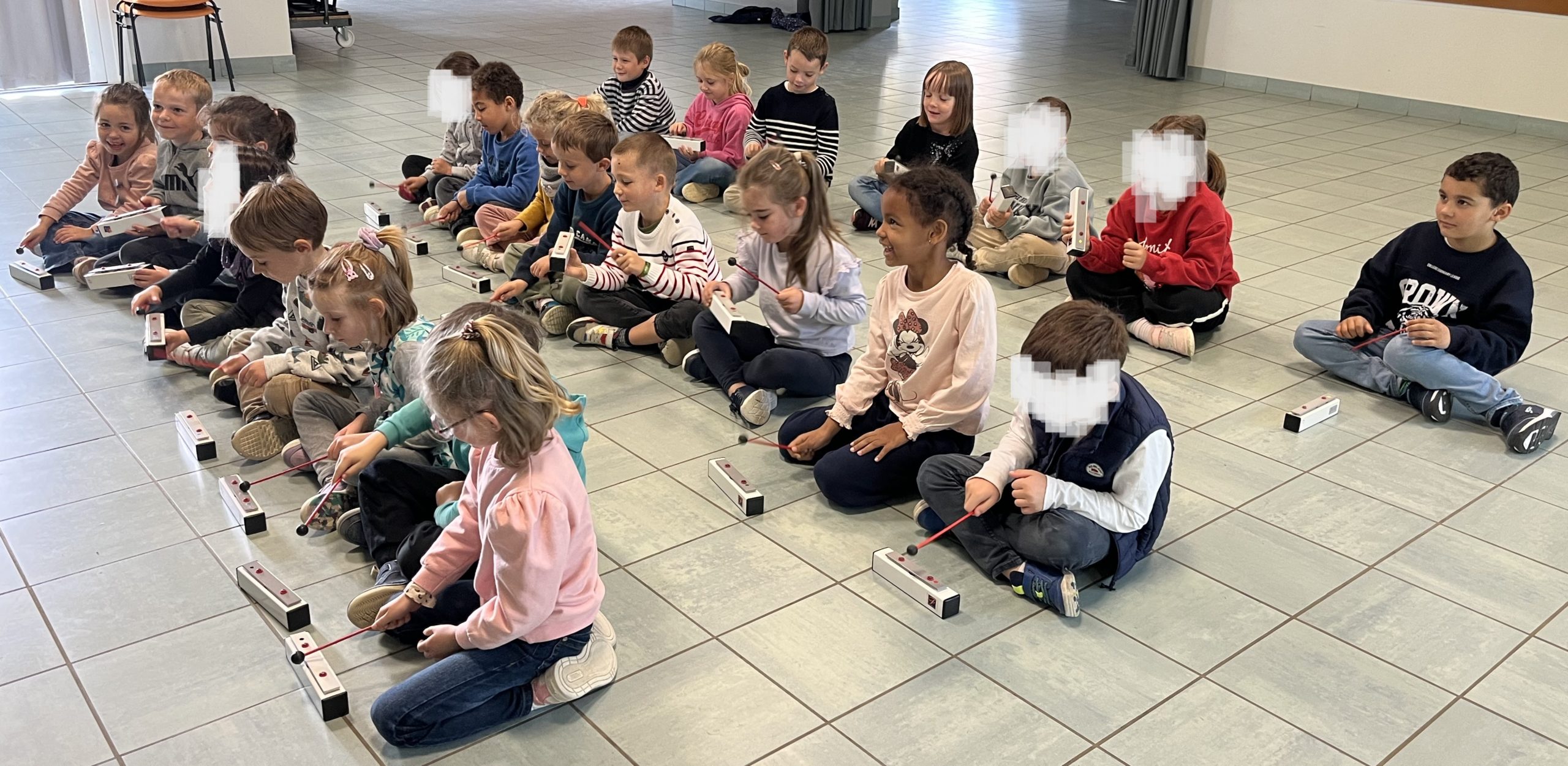 Les enfants se familiarisent aussi avec les lames sonores en suivant une partition codée :