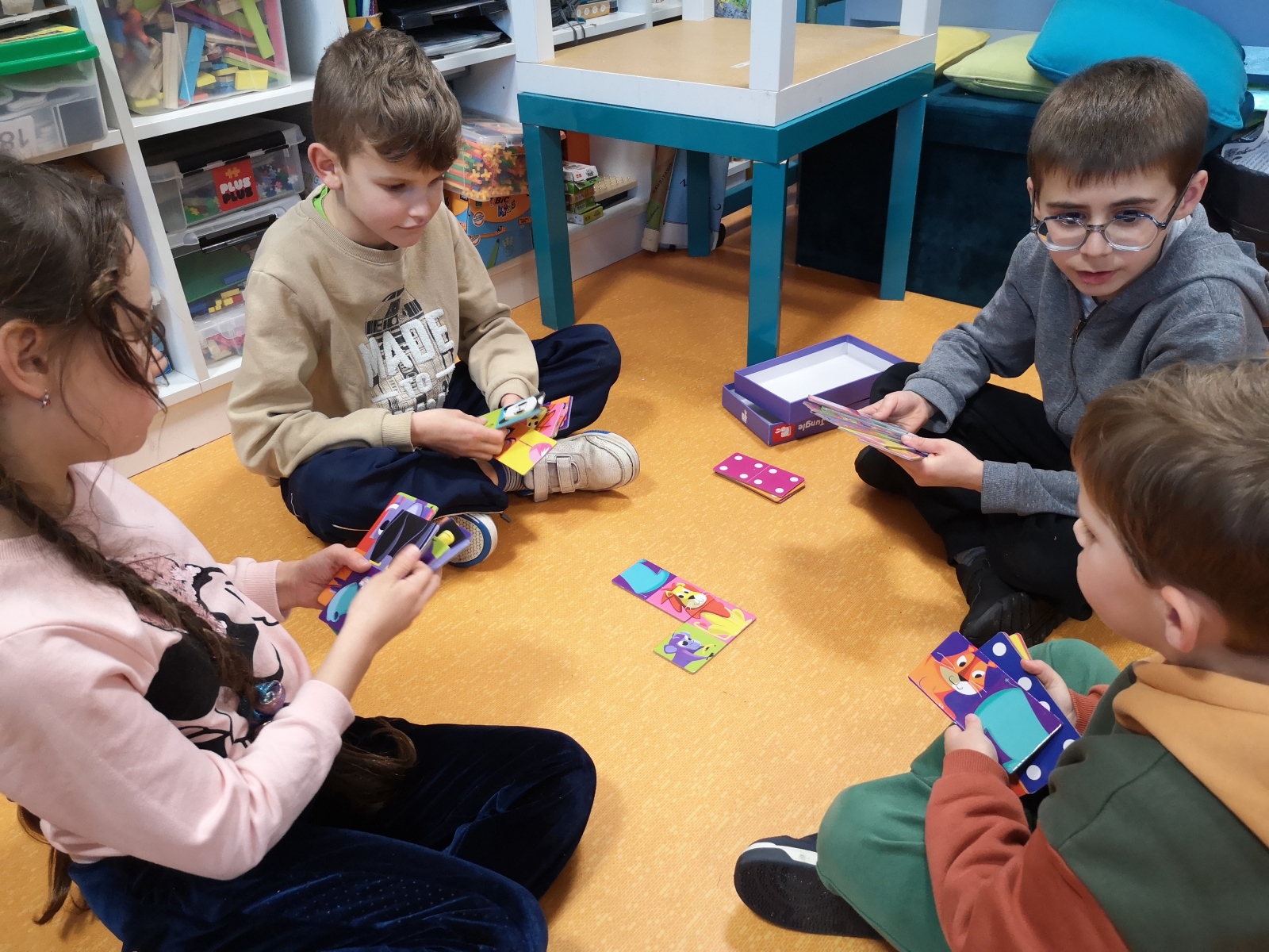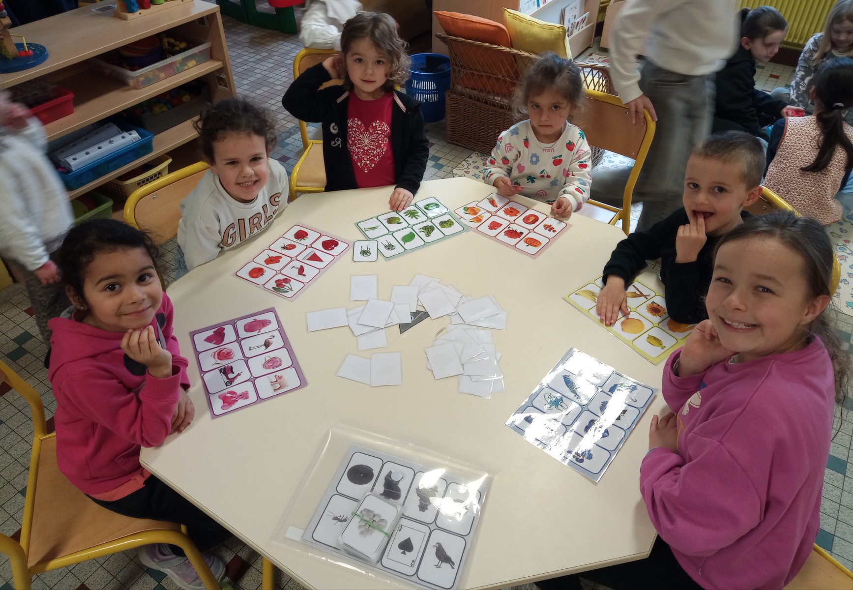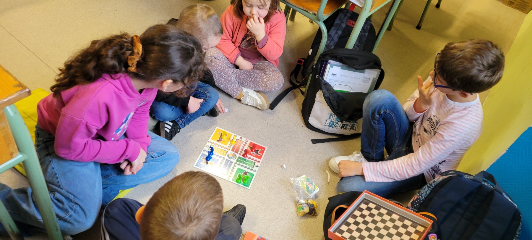 Organisés dans chaque classe, ces moments ont permis aux élèves de se mélanger et de coopérer, les grands accompagnant les petits. Plusieurs jeux étaient proposés : mémory, dominos, lotos, Premier Lynx, Mistigri, Croque-Carotte, Dingo Disc, défi tour de Kaplas…