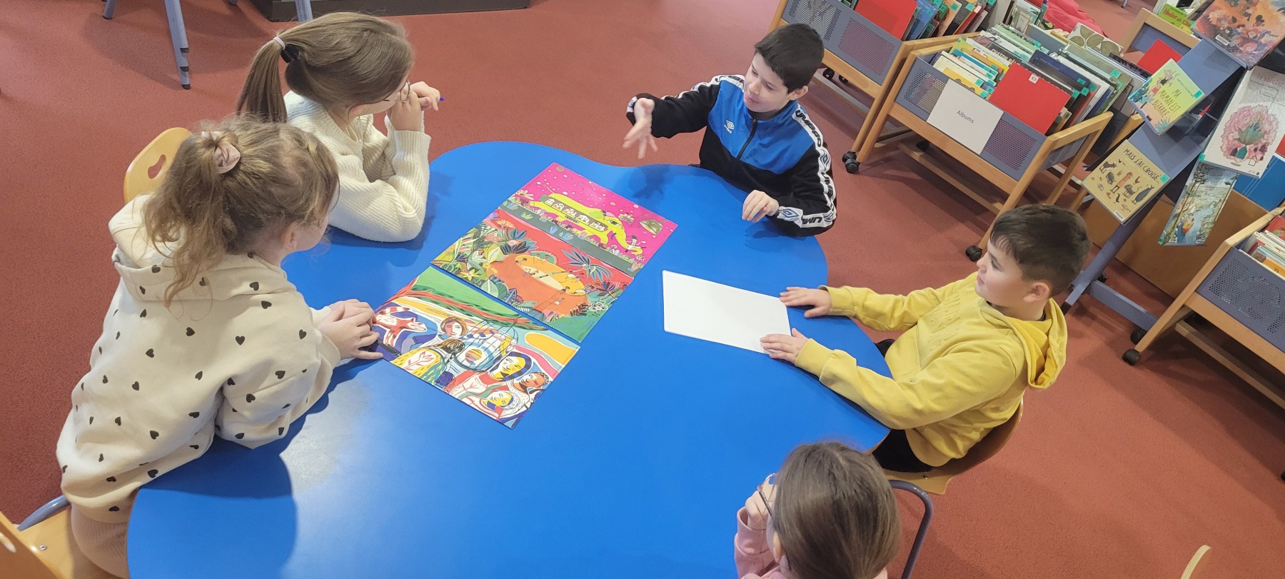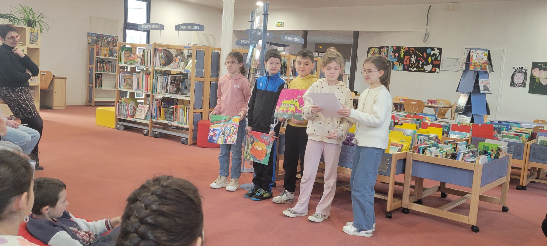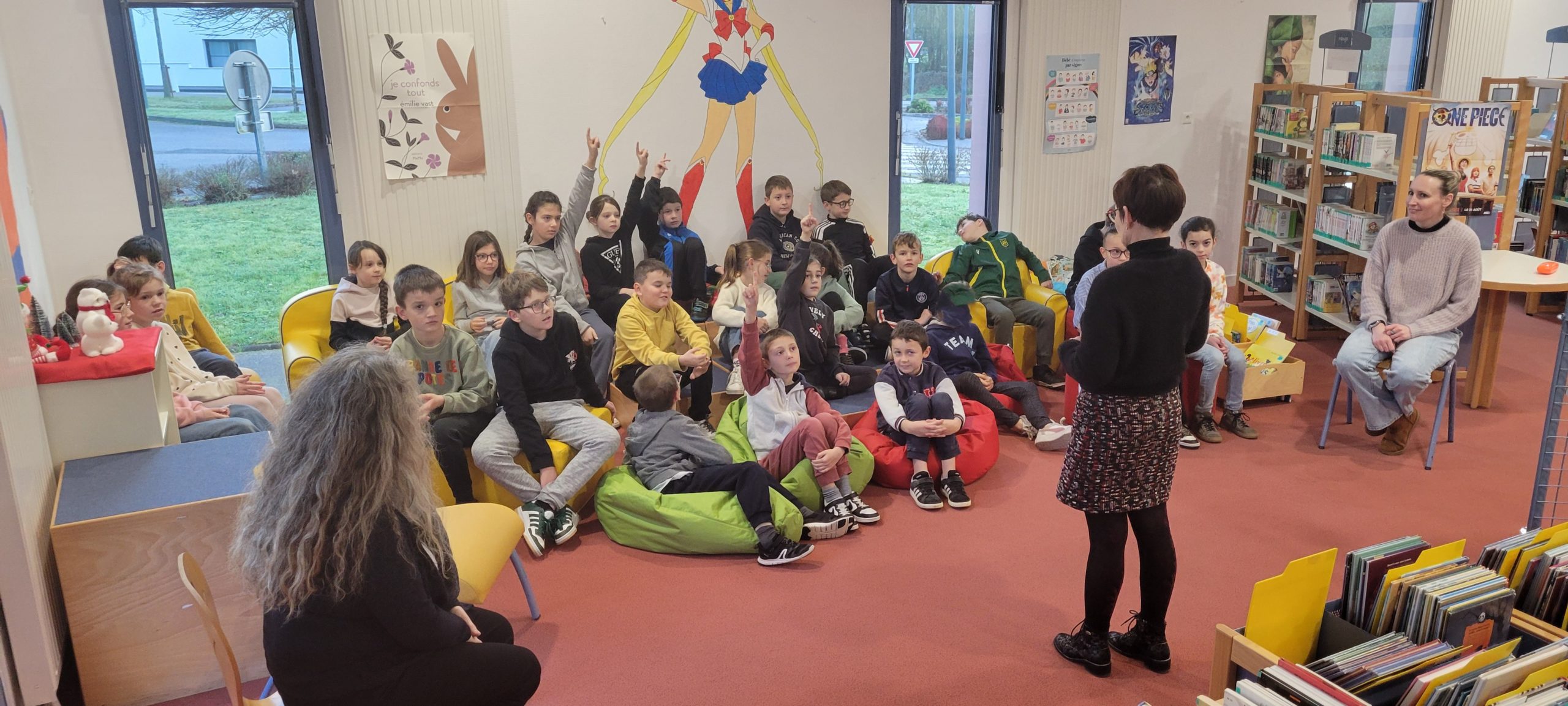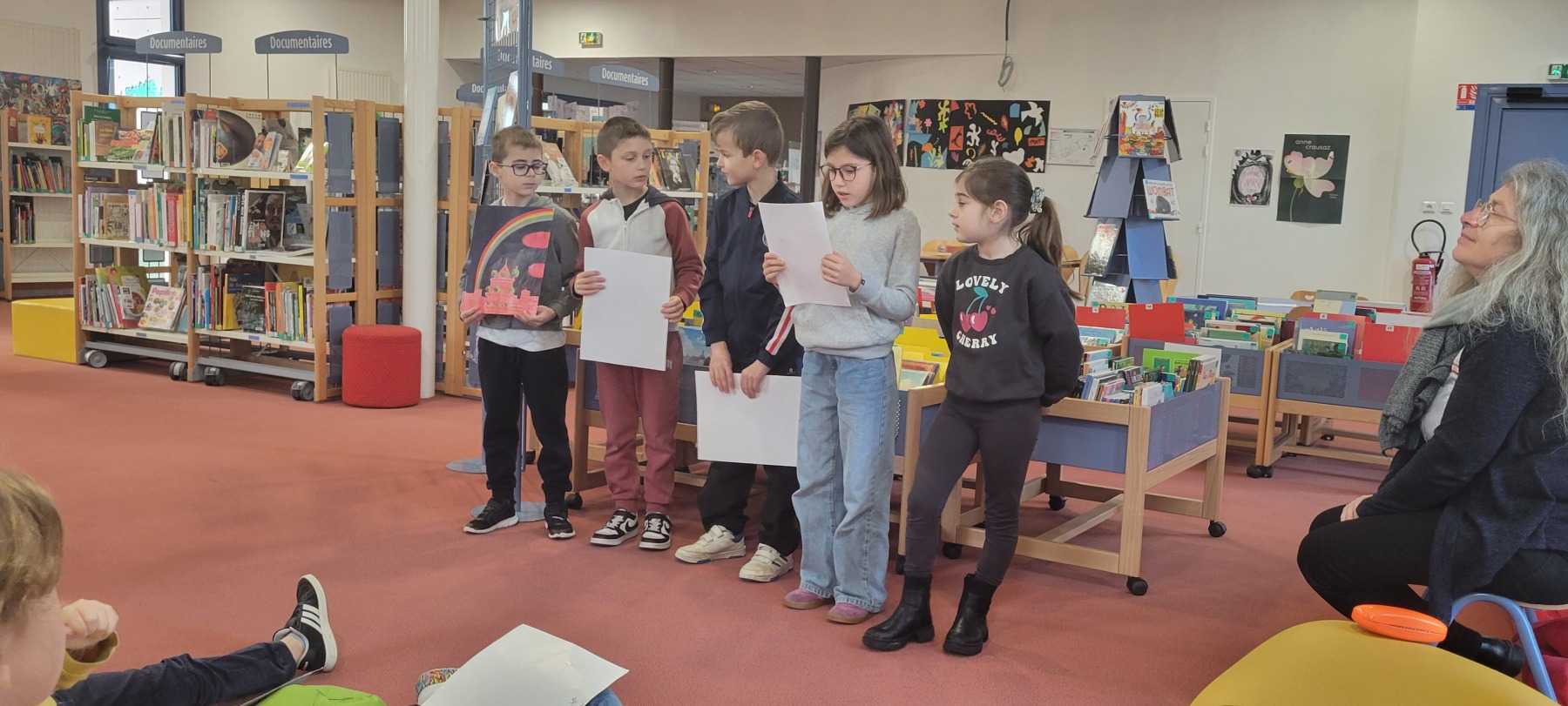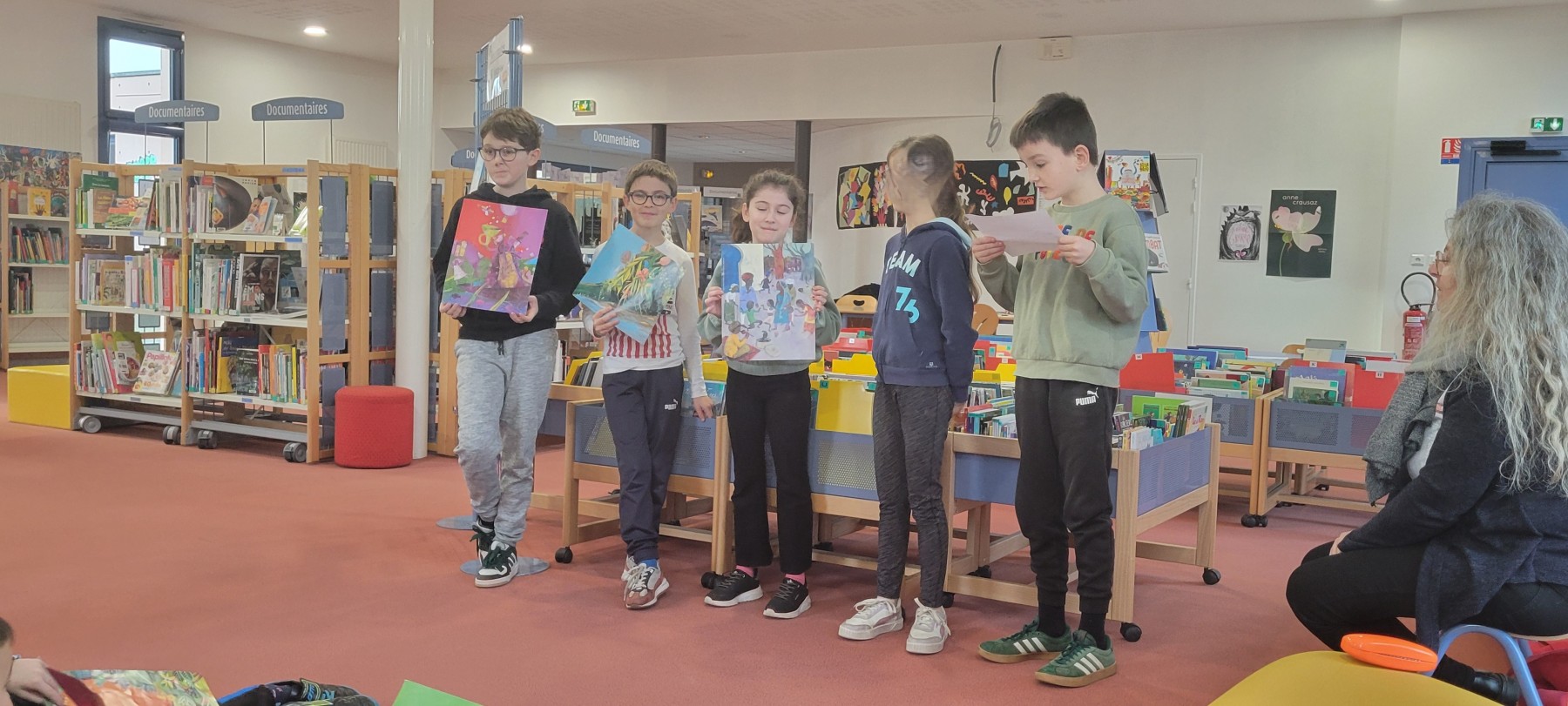 Le vendredi 16 janvier, les élèves de CM1 se sont rendus à la bibliothèque municipale de Mésanger pour participer à l’atelier « La petite école de l’imagination ».