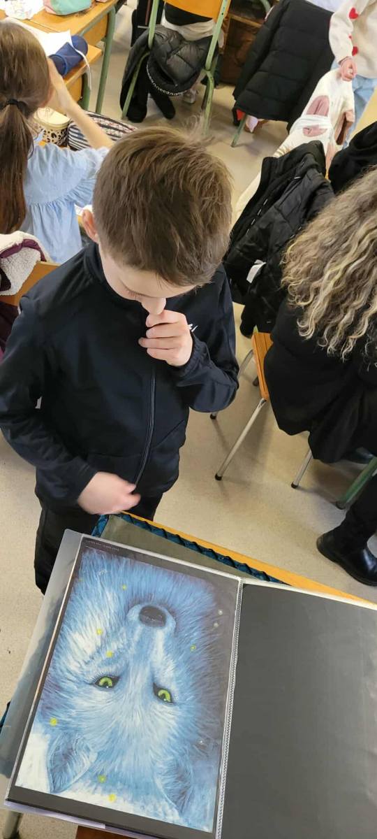 Katell a passé toute la matinée avec nous. Elle nous a présenté et expliqué son travail, nous lui avons posé beaucoup de questions. Nous avons pu voir certaines peintures originales des illustrations de ses livres. Elles sont magnifiques !