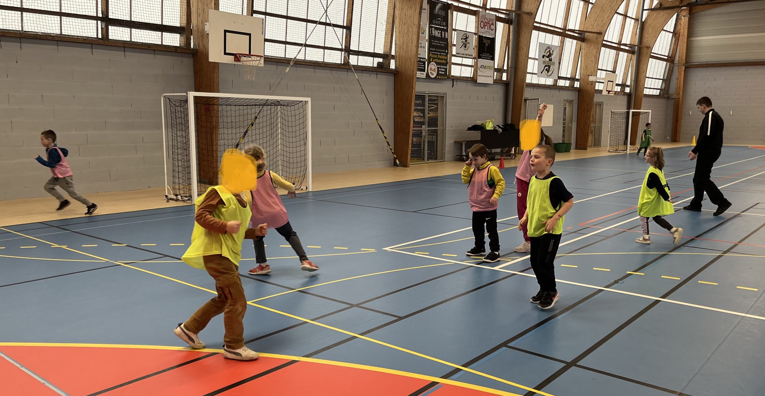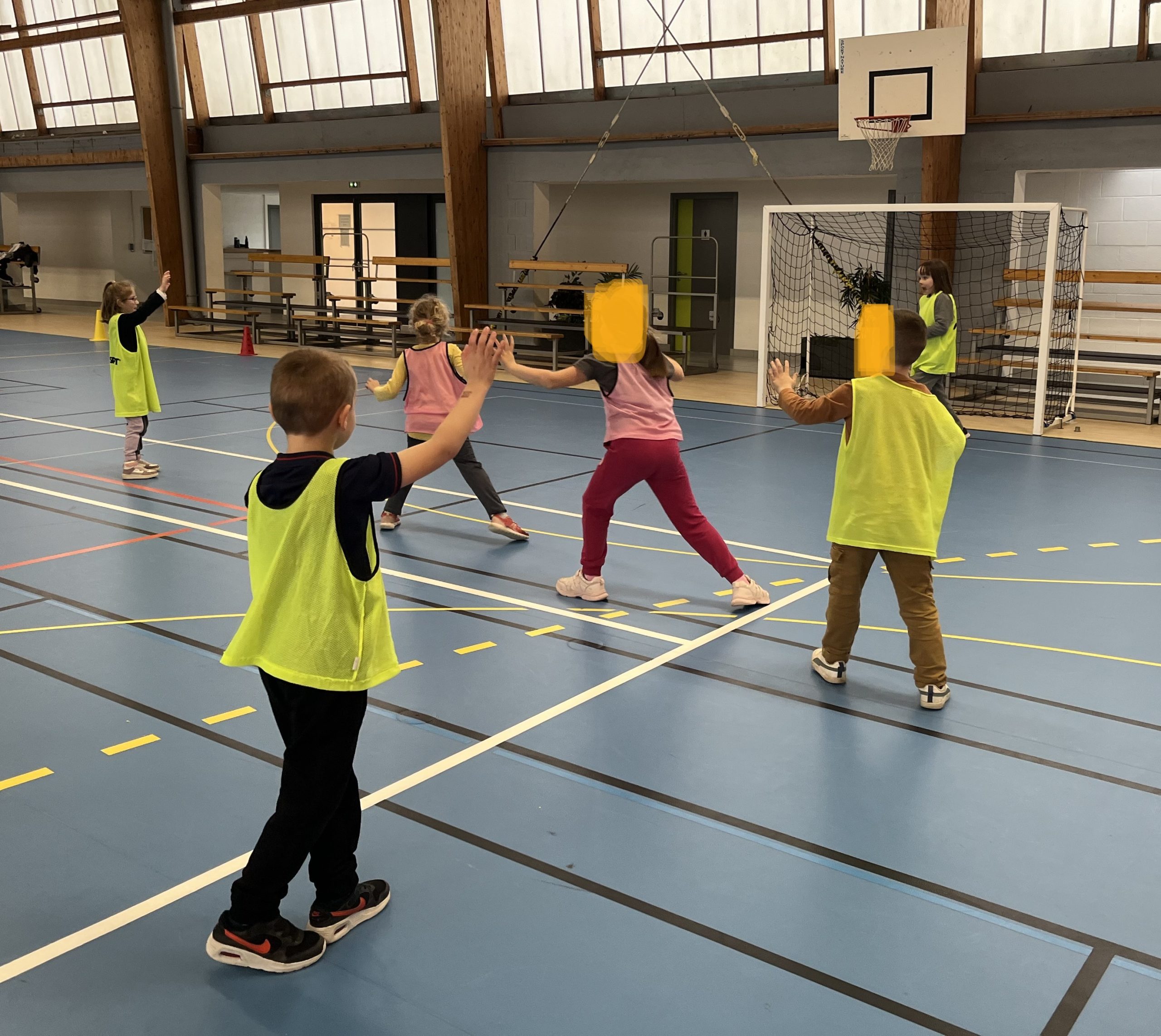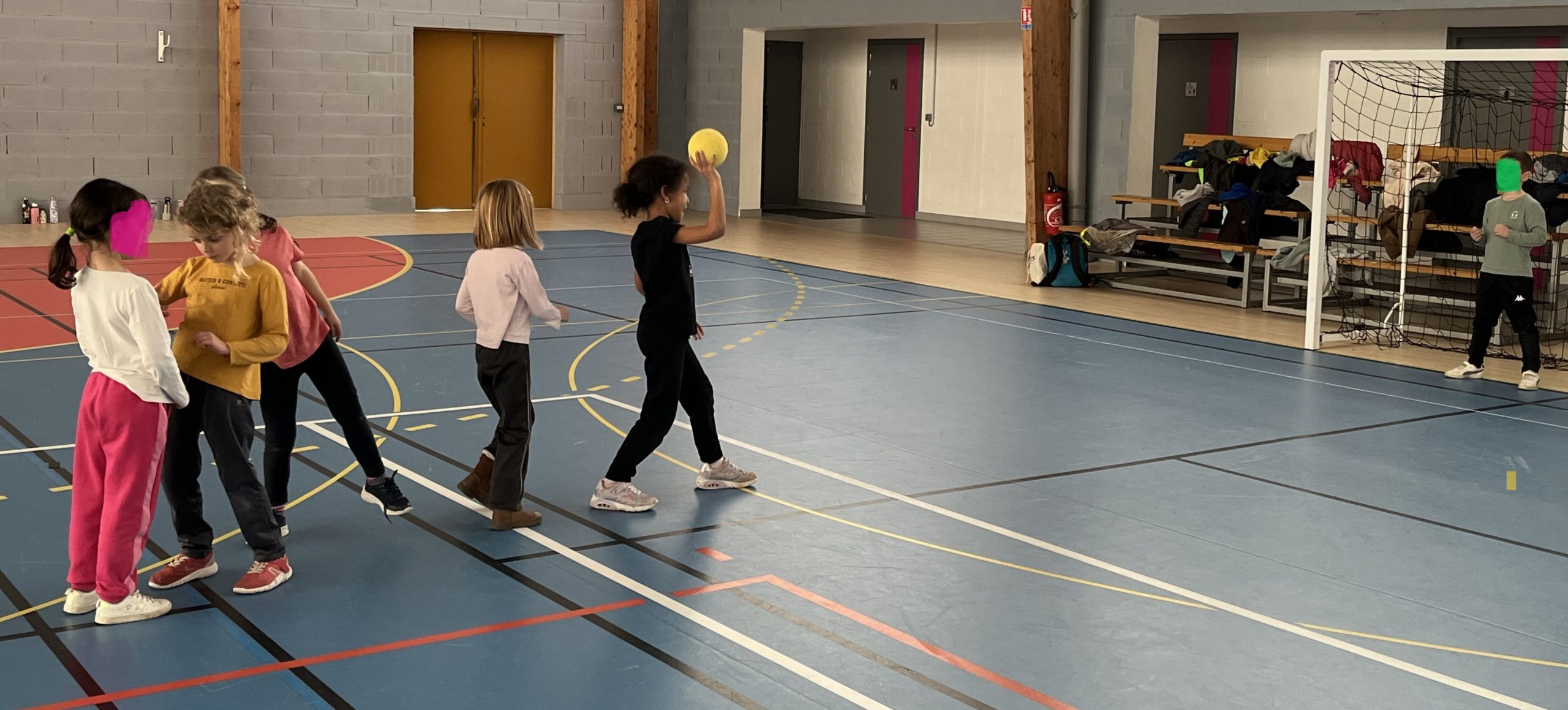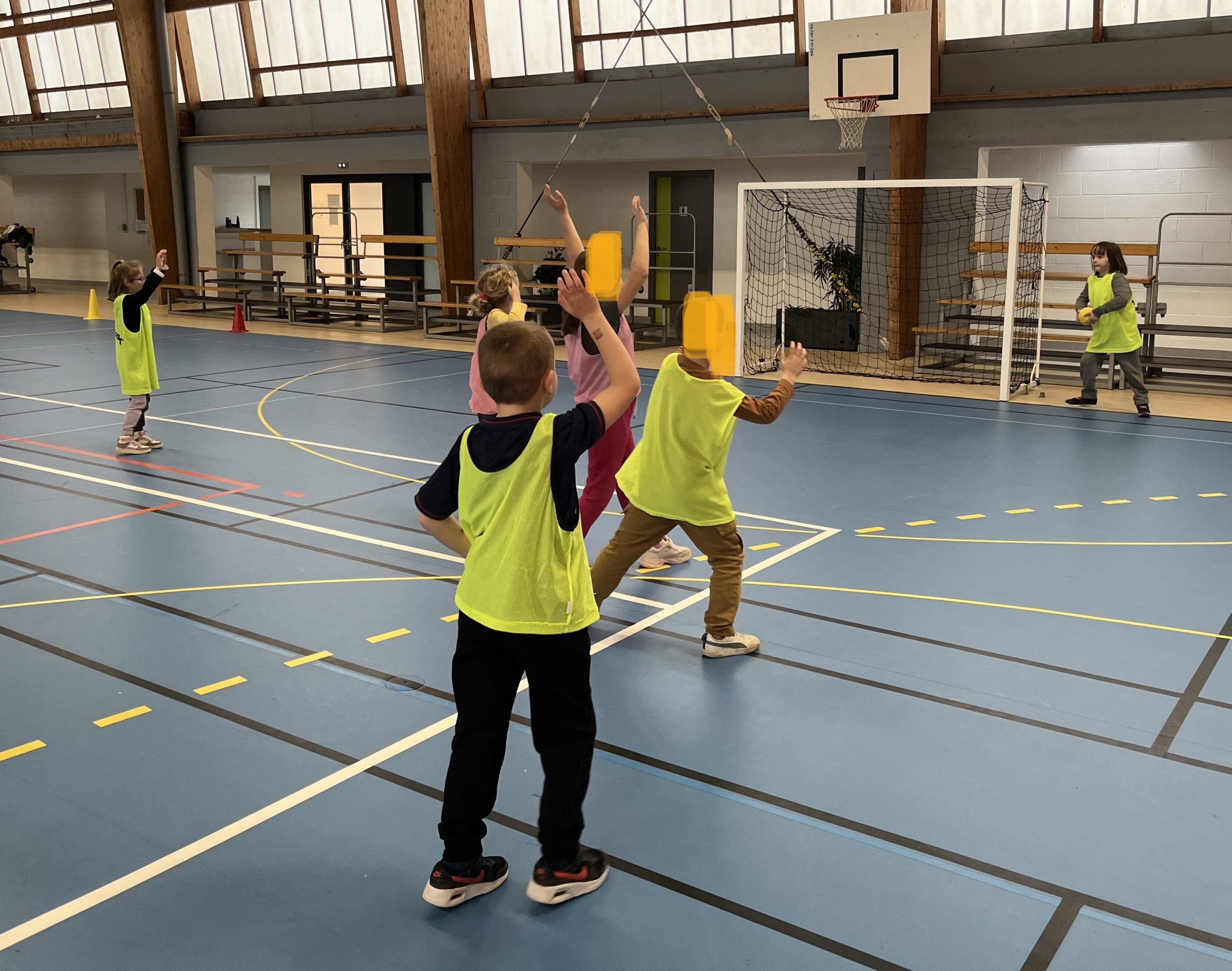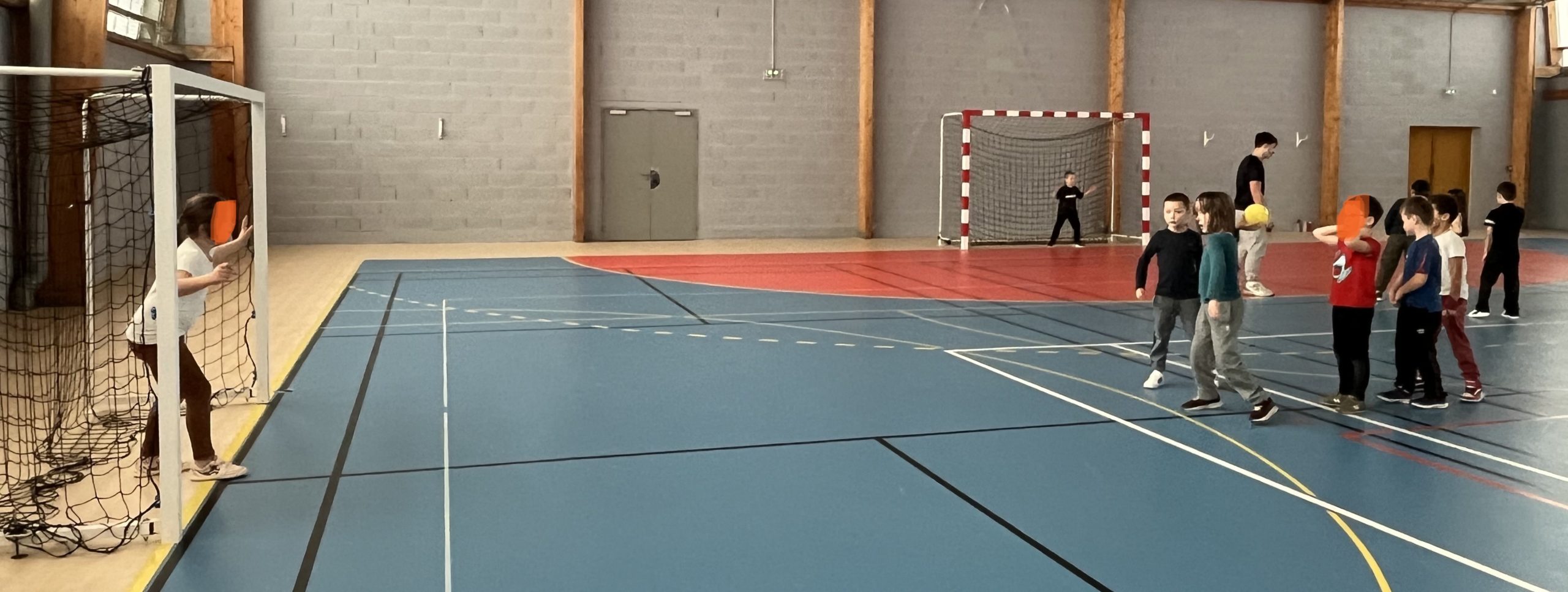 En janvier et fĂ©vrier, les enfants de la classe de CP ont eu la chance de s’initier au handball avec MatĂ©o.