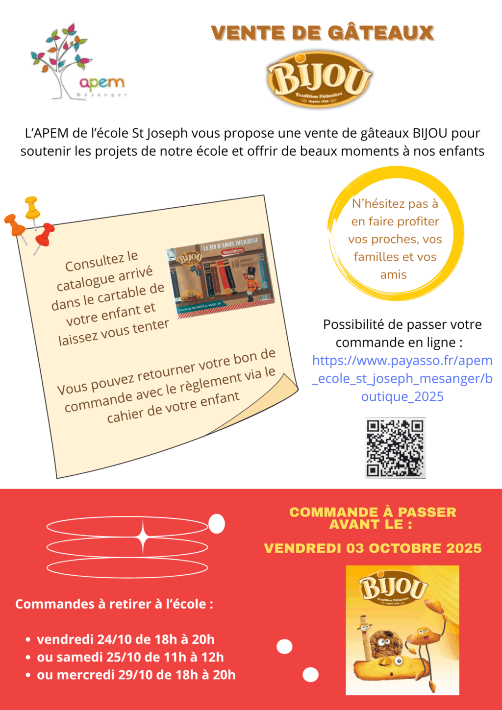 Avis aux gourmand(e)s Comme chaque année, vous pouvez retrouver avec plaisir et gourmandise notre vente de gâteaux Bijou . N’hésitez pas à partager l’info auprès de vos amis, famille, collègues, voisins