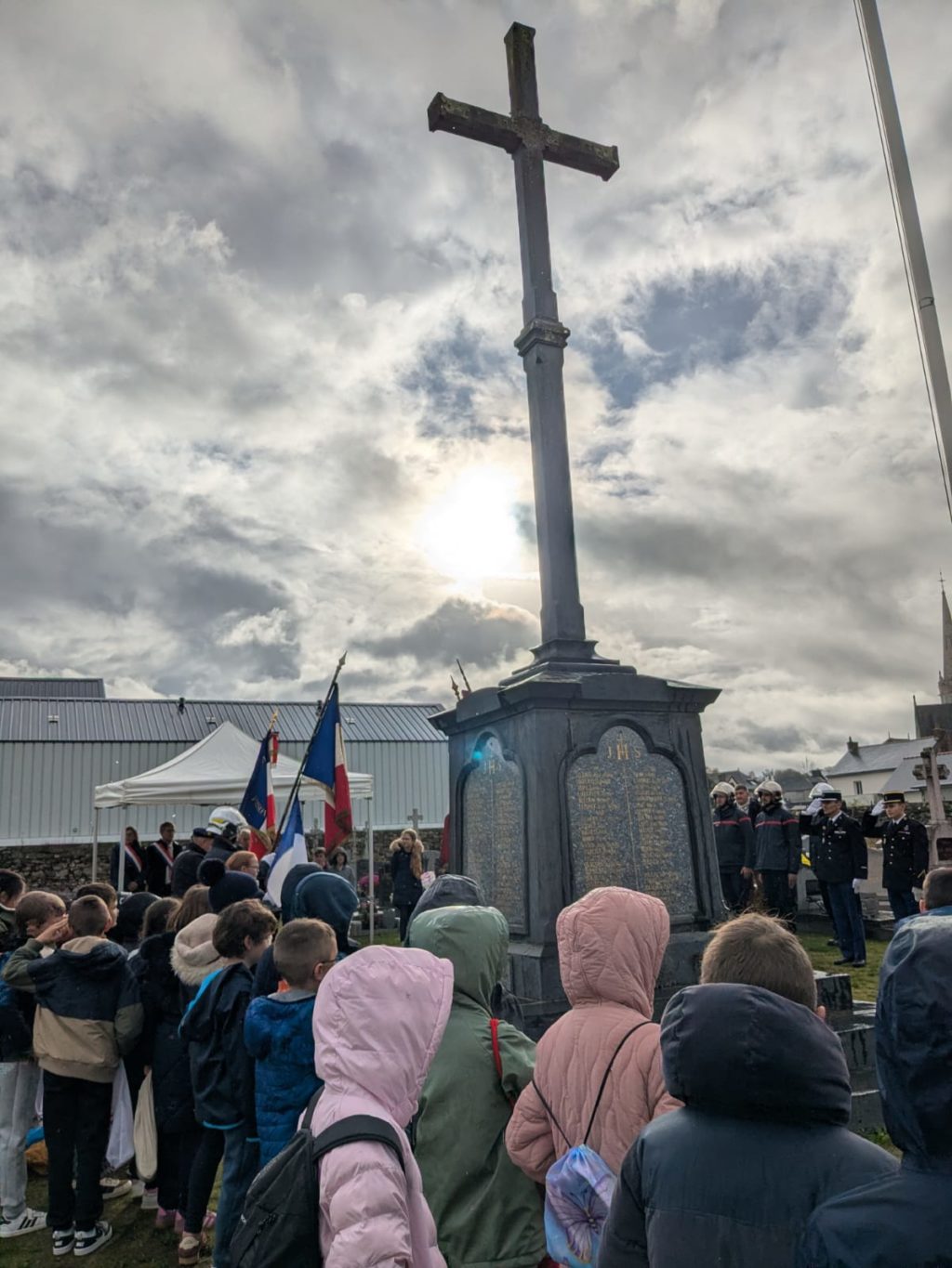 Le lundi 10 novembre 2025, les élèves de CM1 et CM2 des deux écoles de la commune ont été invités à assister à la cérémonie de l’Armistice du 11 novembre. Cet évènement s’est déroulé au cimetière près du monument aux morts, et en présence des anciens combattants, des porte-drapeaux, des pompiers, de Madame la maire…